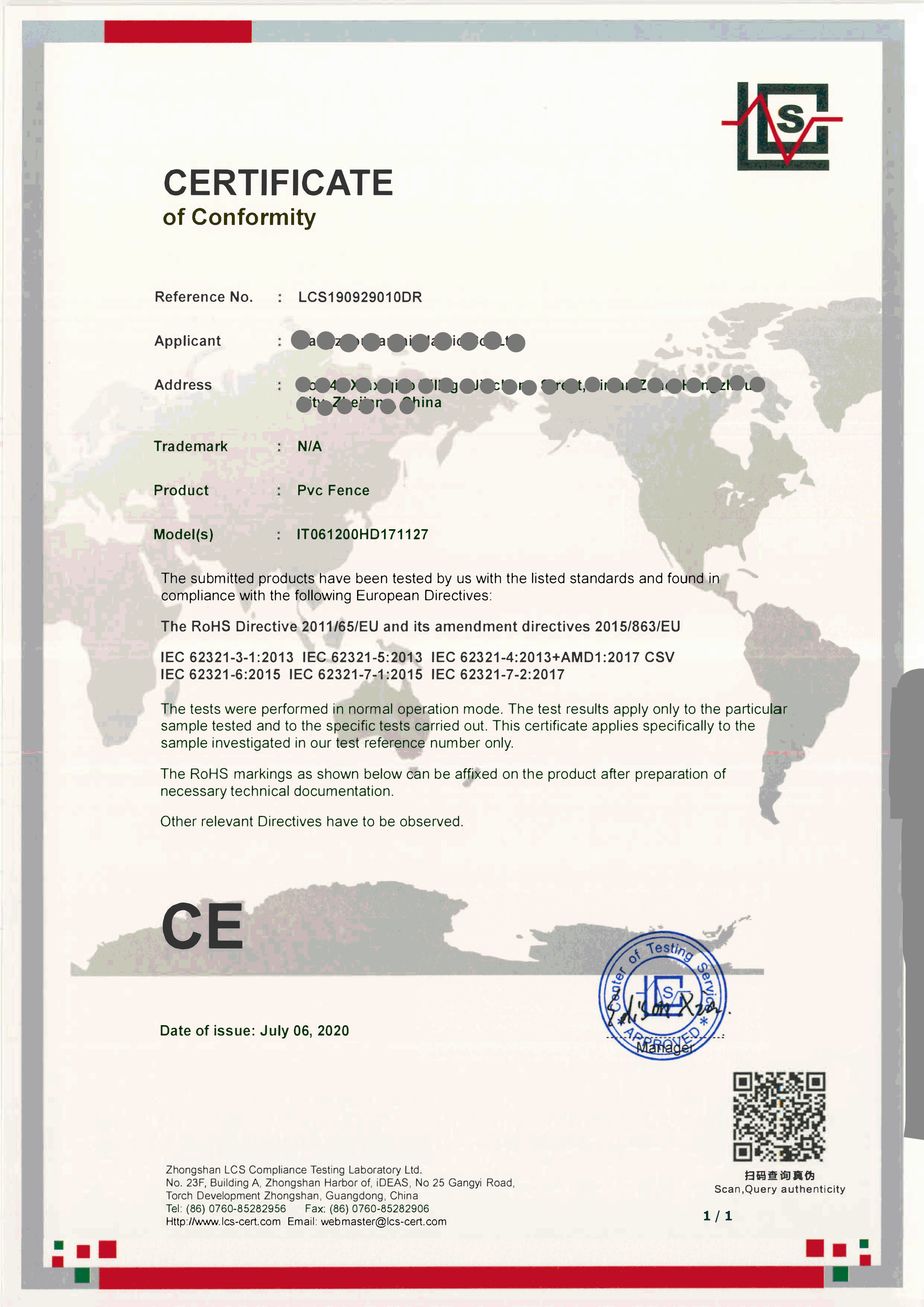 Our products have the SGS test on UV, Deflection Temperature , Striker Impacted by a Falling Weight, Lead Free.