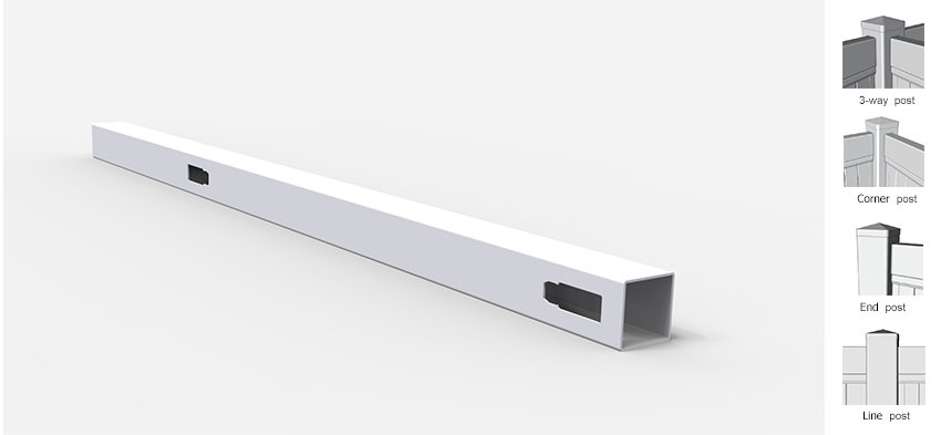 A fence post that you won’t need to paint or stain. Available for End, Corner, Line and 3 or 4-way post. It resists rust and won’t splinter or decay, easy to install with conventional tools, keeping your fence attractive with very little maintenance.
